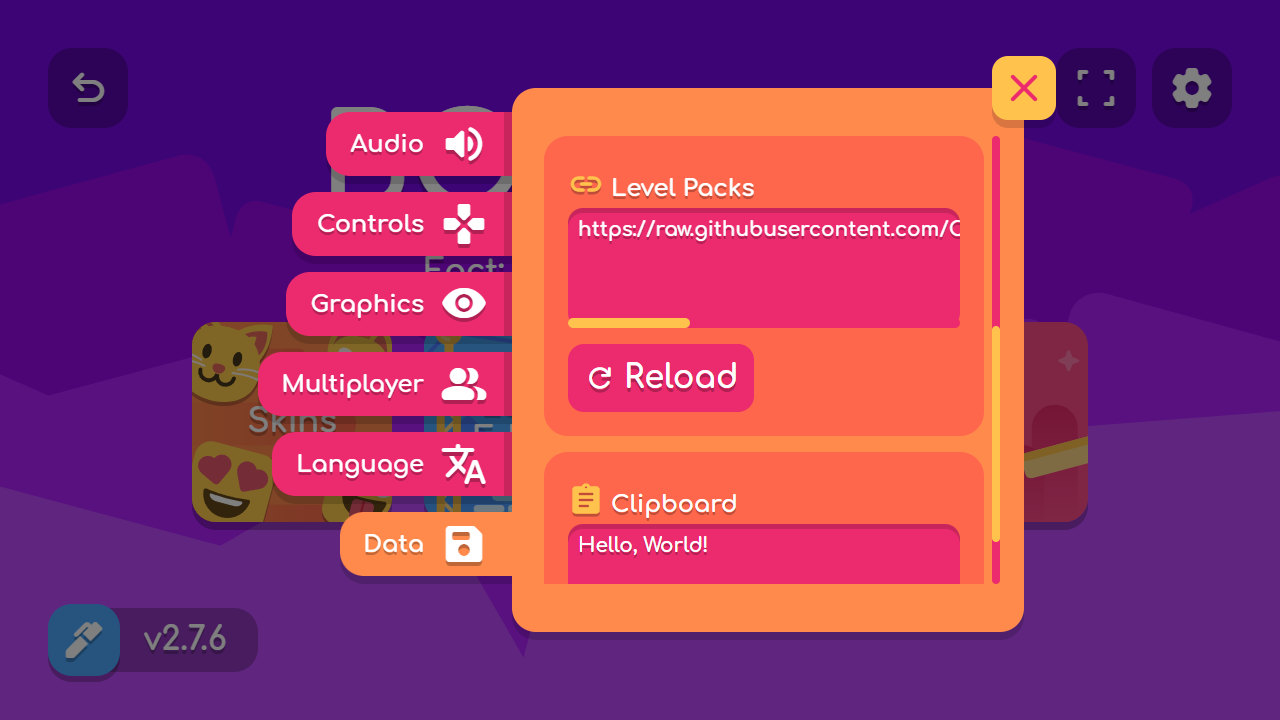The default level pack is curated by Charlieee1. To download the level pack, simply go to the settings menu, select “Data” and click the “Level Packs” text area.