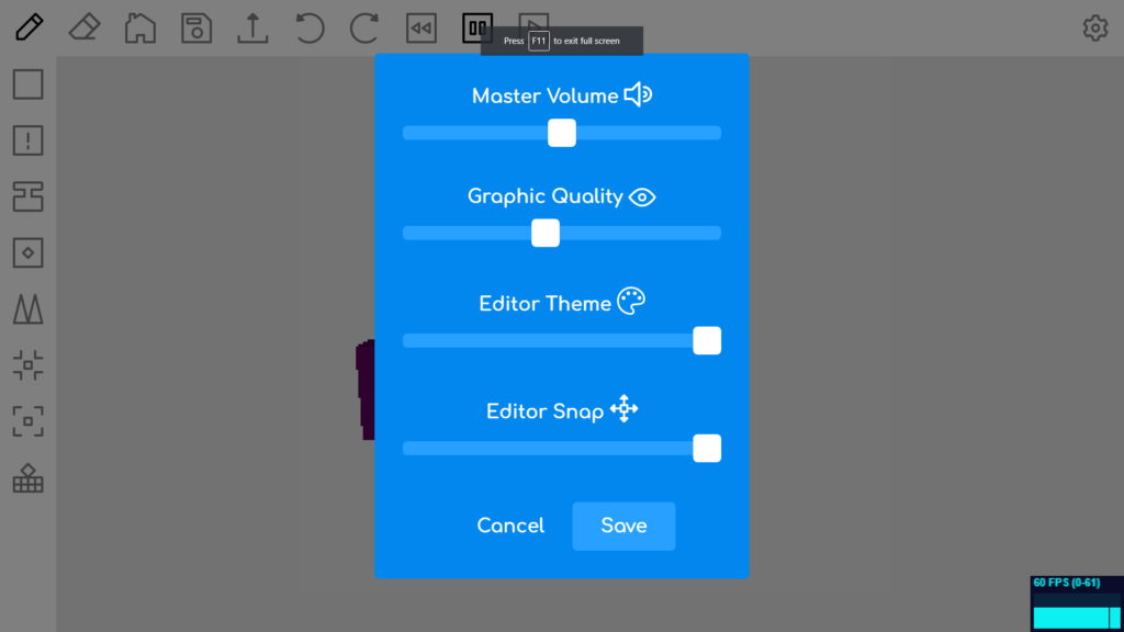 With today’s update, you can now click and drag blocks on a “grid” for a more precise level building experience. This is incredibly helpful if you are designing a staircase, or want to have a perfectly aligned obstacle/building.